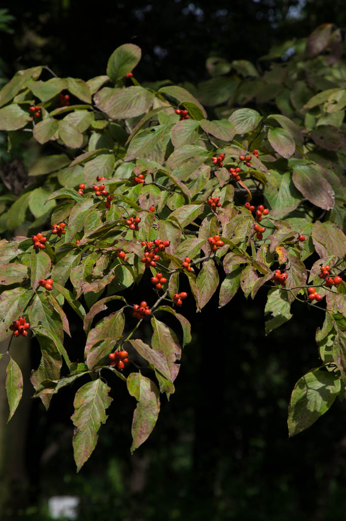 何の木かわかりませんが赤い実が鮮やかでした。 葉も色づき始めていて今日は暑い日でしたが秋を感じます。