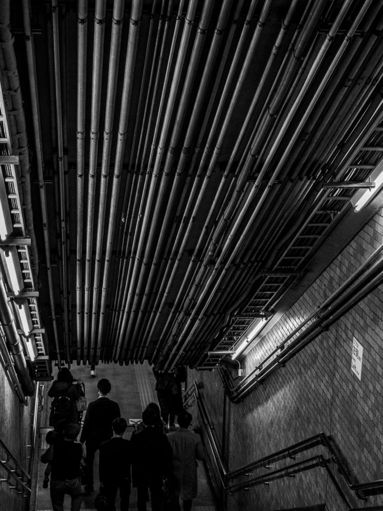 たくさんのパイプが走る天井