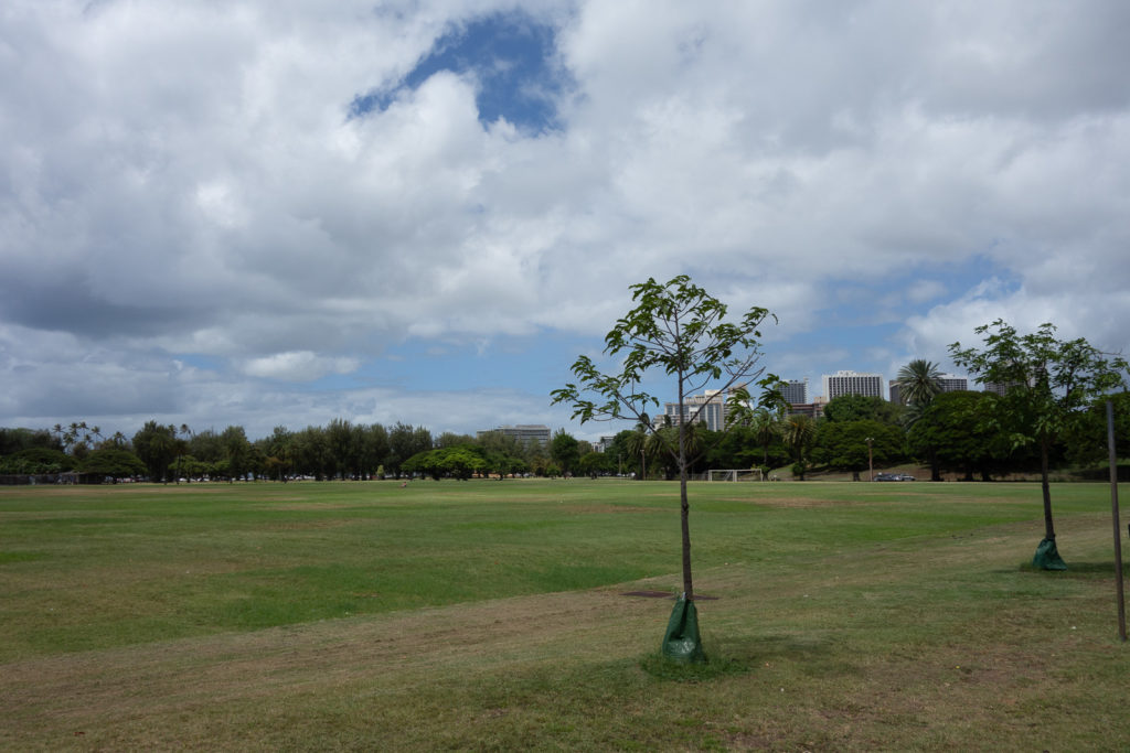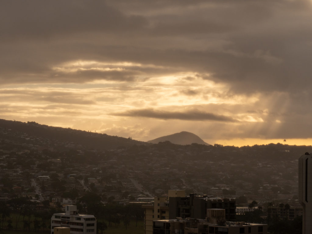 写真は遠くに見えるココヘッドと朝を迎える住宅街