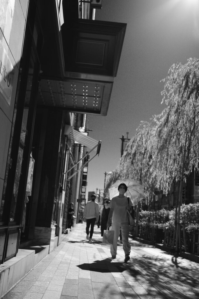 電源を入れっぱなしで手に持ちながら銀座をスナップをして歩いたが約一時間で電池は4分の3位消耗した。