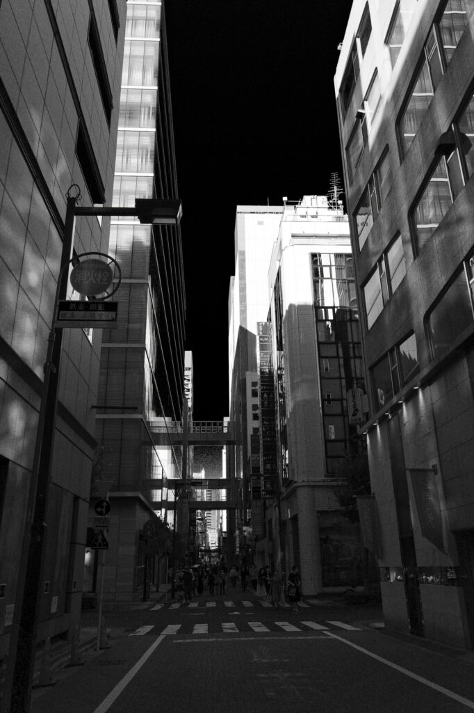 人がやっと通れるような路地もあれば見上げると無機質な近代的な建物が並んでいたりする。
