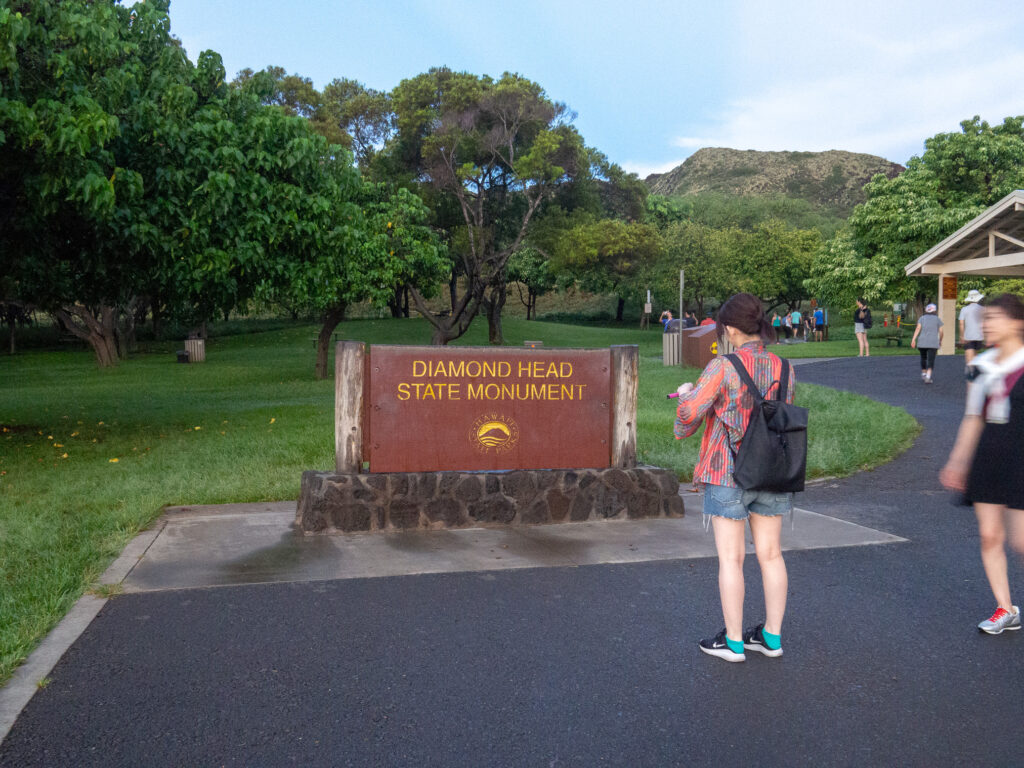 ダイヤモンドヘッド 投稿日時: 2021年11月6日 投稿者: hayahiro 返信 ダイヤモンドヘッドへ向かうここからダイヤモンドヘッドへの登山道が始まります。向こうに見えるのがダイヤモンドヘッド頂上。この出発点はクレーターの中にあります。駐車料金を払い駐車場に車を駐めるとすぐ目の前がこのモニュメント。駐車場が開くのを並んで待って行ったのですが多くの人が頂上を目指していました。前半は緩やかな登りでスタスタと行けますが途中から険しくなってきて疲れてきた頂上手前には長い階段があります。頂上からはワイキキを一望でき眺めは最高です。
