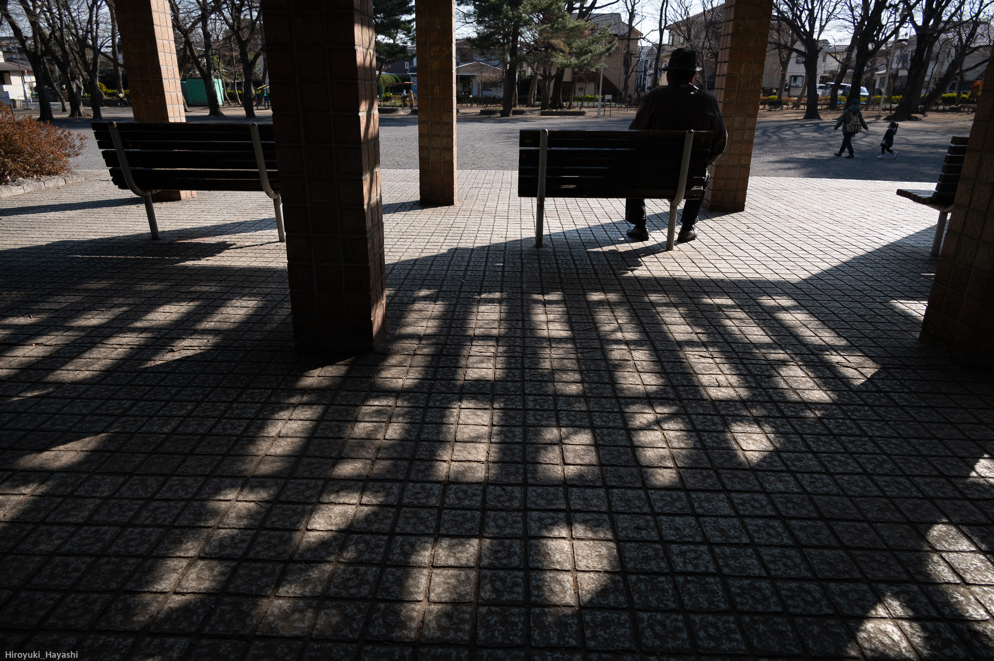 ベンチに座って日向ぼっこしている人も寒さそうです。