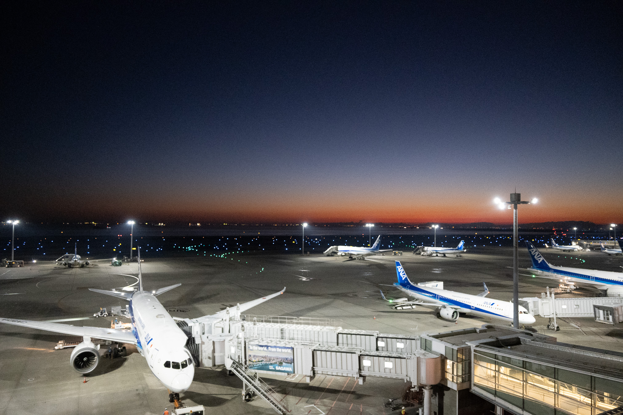 今日は昨日の写真の30分くらい前、日の出前の羽田空港です。