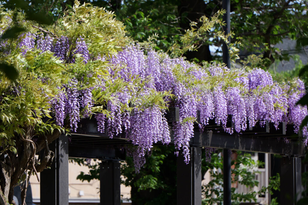 いつも通る通勤路にある公園で藤の花がきれいに咲いていました。